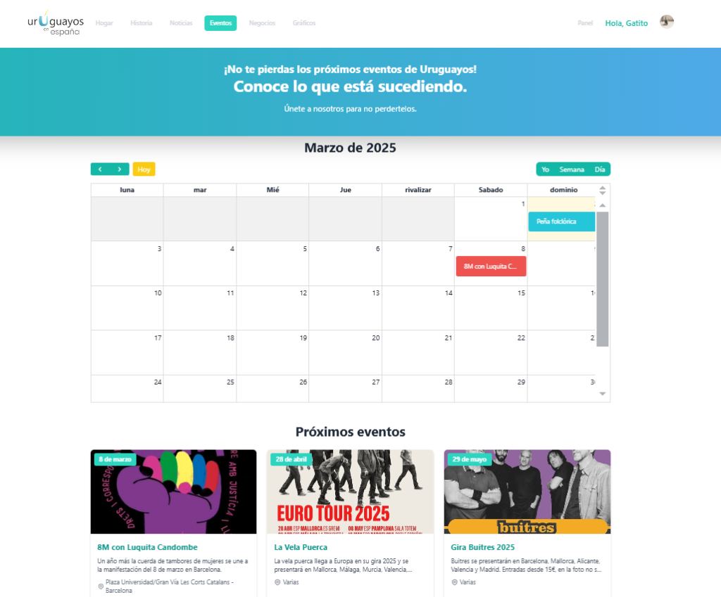 Esta web es una plataforma diseñada para fortalecer los vínculos culturales de uruguayos en España.
